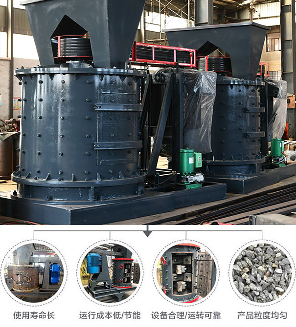 3:易損件消耗低,錐形破碎腔型是根據物料撞擊角度設計,采用石打石的破碎原理,直接降低了設備的使用成本,錘頭采用多級調整裝置,大大延長了錘頭的使用壽命,和同等制砂設備相比,其運行費用能夠降低百分之四十。